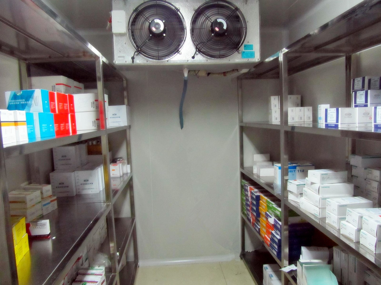 医药冷库工程概况:本项目位于四川省资阳市,医药冷库占地面积10平方,库体高度:2.8米,冷库容积28立方,设计温度为: 2℃至8℃ ;阴凉库占地面积:500平方,库体高度:4米。阴凉库容积:2000立方。设计温度为: 15℃至18℃。